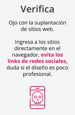 - En ocasiones imitan la identidad entidades fiscalizadas por la CMF por lo que se recomienda a las personas que se cercioren previamente de que se trate realmente del sitio web oficial de la entidad fiscalizada y que utilicen los canales establecidos por dicha entidad.