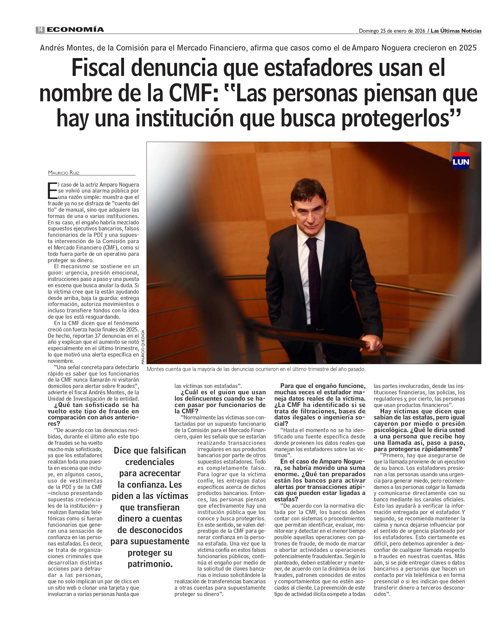 Revisa la entrevista de Las Últimas Noticias, en la que el Fiscal de la Unidad de Investigación de la CMF, Andrés Montes, advierte a la ciudadanía sobre un nuevo esquema de fraude que suplanta la identidad de la CMF.