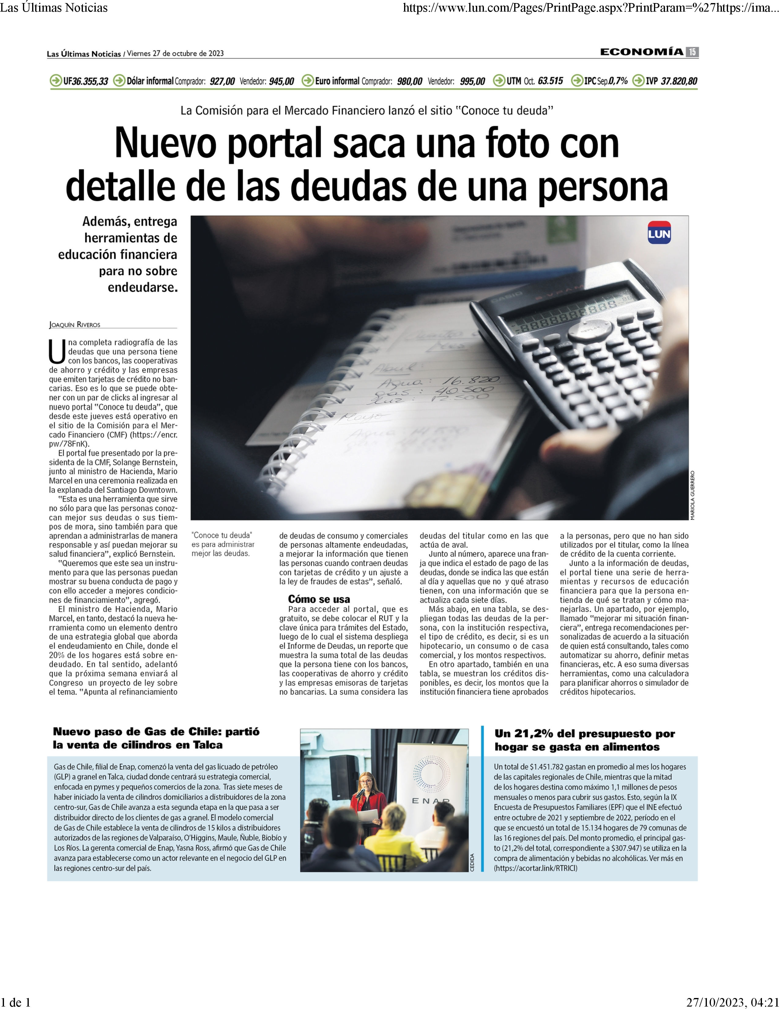 Las Últimas Noticias. 27 de octubre de 2023.