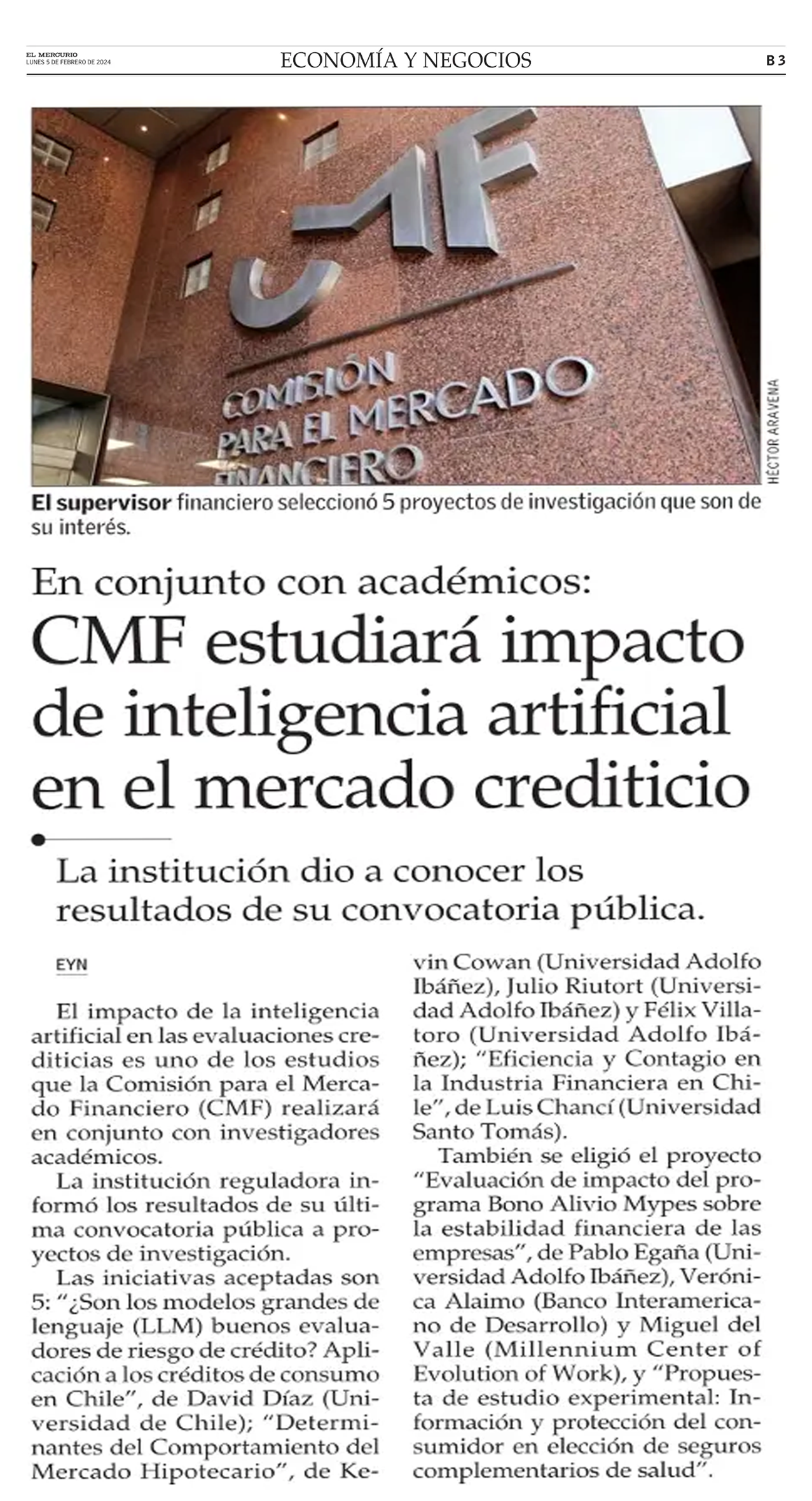 Economía y Negocios, El Mercurio. 5 de febrero de 2024.