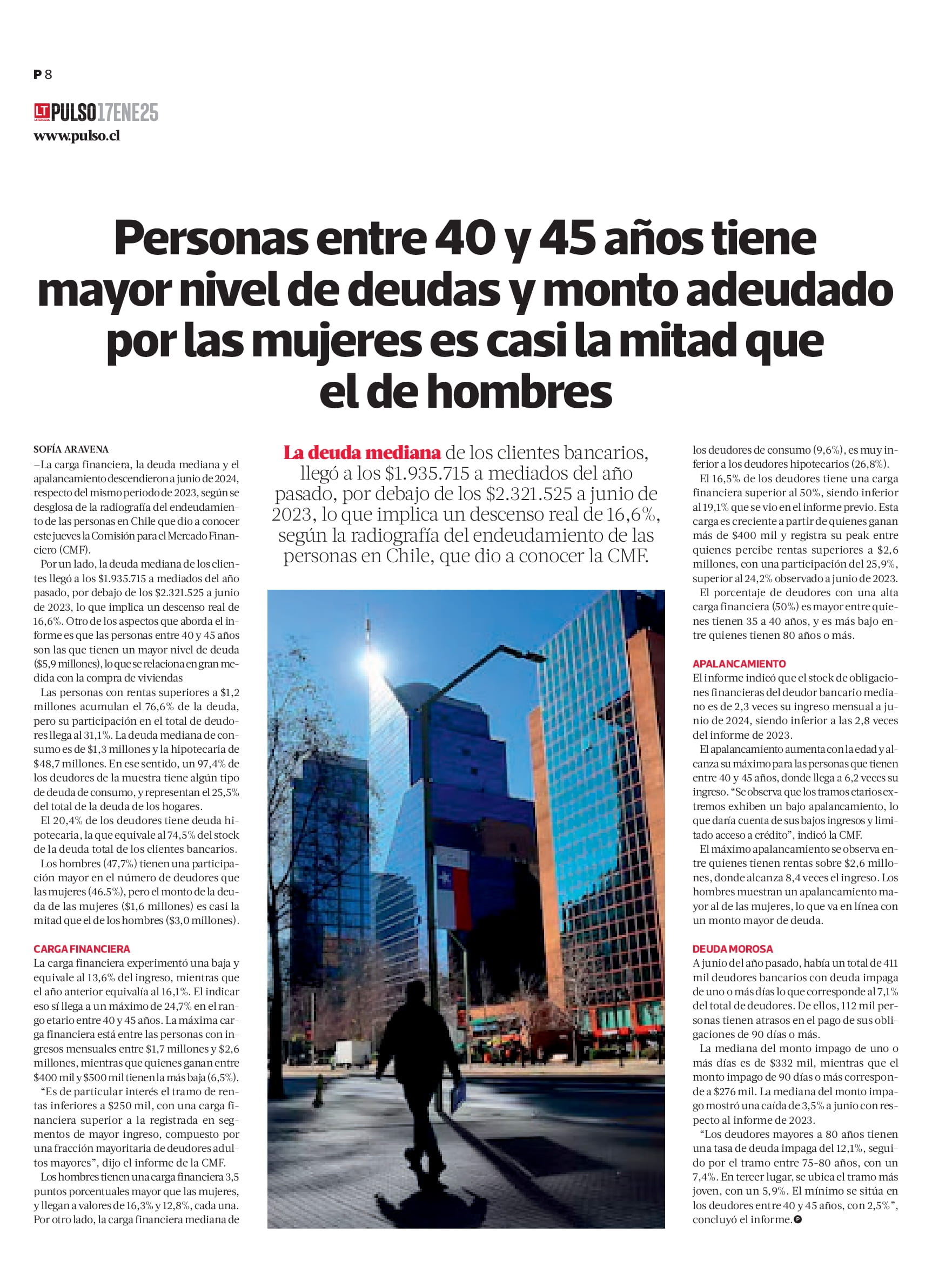 Nota del diario Pulso que informa sobre las cifras más destacadas del Informe de Endeudamiento 2024. 17 de enero de 2025.